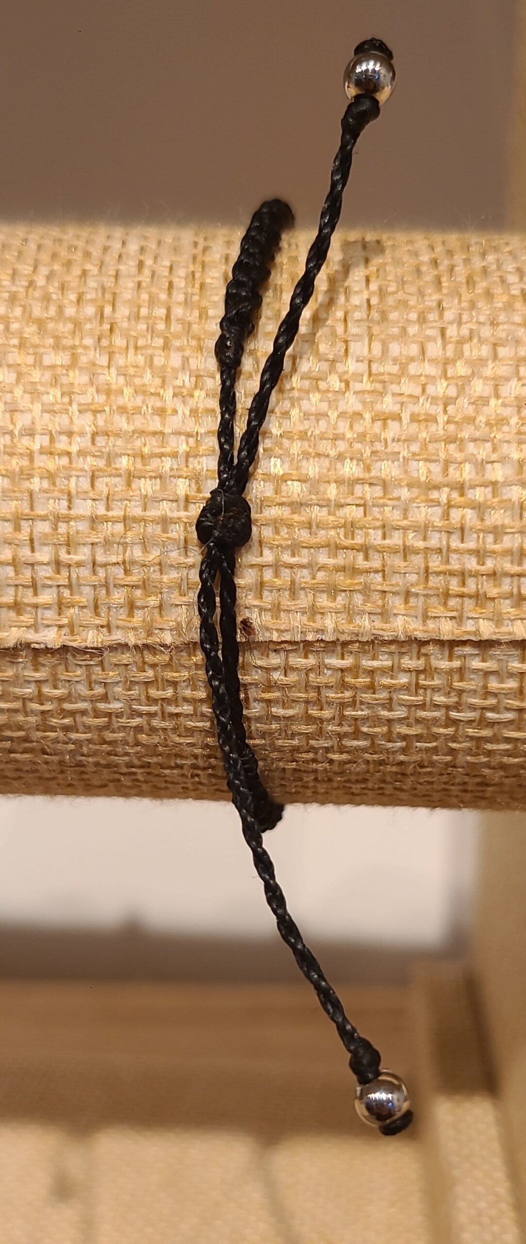 Le cordon est réglable grâce à son nœud coulissant et se termine avec deux petites perles en acier inoxydable de diamètre 4mm pour faciliter sa prise en main