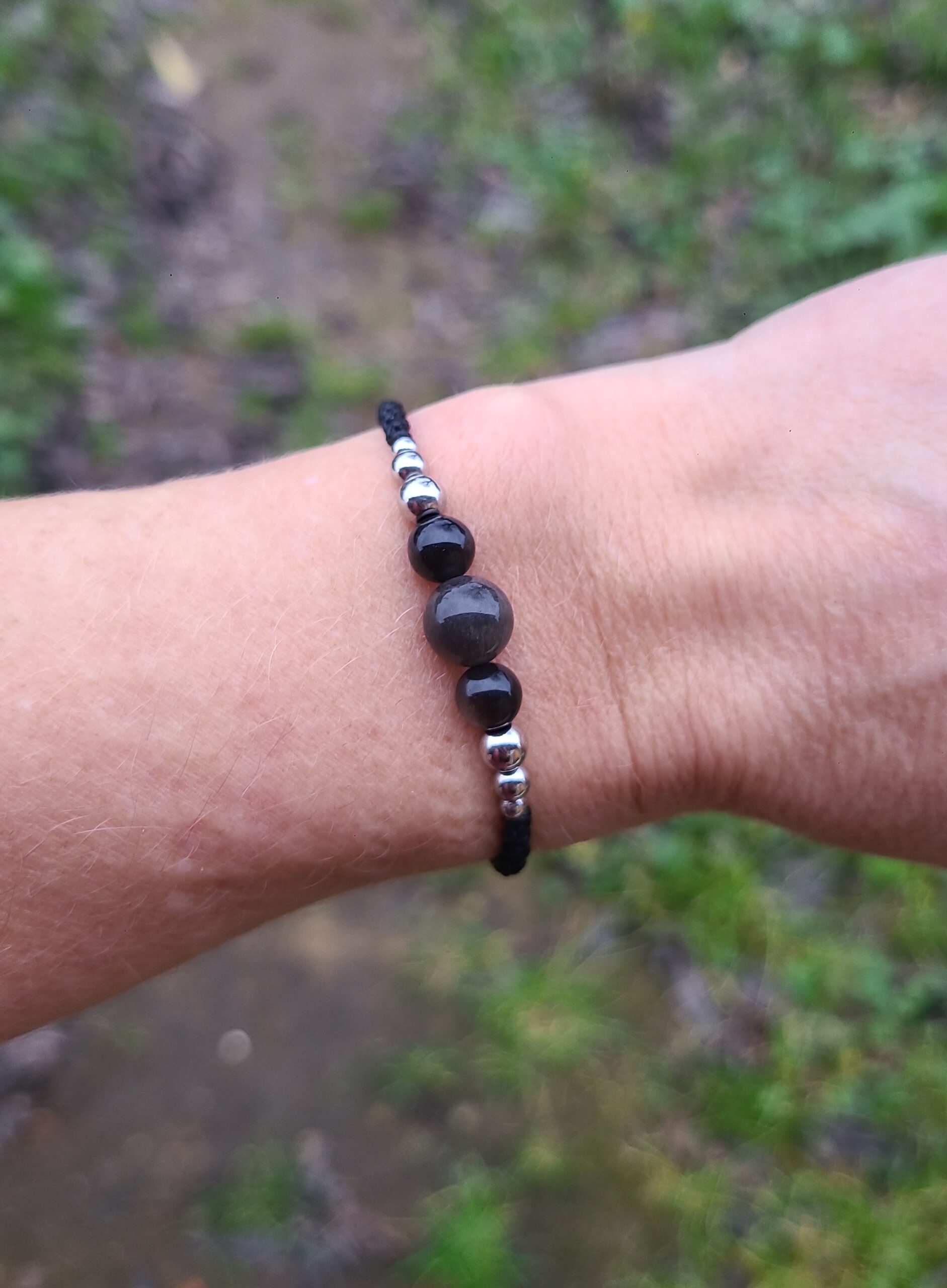 Bracelet Obsidienne Argentée